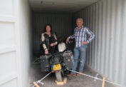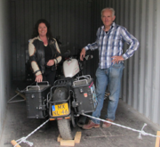 Vandaag de motoren in de container gezet, door iemand van LinksLtd. wat heel zorgvuldig gebeurde.