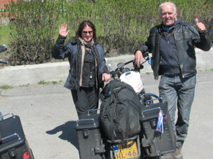 De wegen waren afwisselend van zeer goed, slecht, en heeeeeel slecht. Beide een schuiver gemaakt over een stuk wegdek dat zojuist was voorzien van een verse laag teer. Ik zat achter Ad en zag zijn achterwiel zwiepen, gelijk daarop begon mijn achterwiel ook flink op en neer te gooien. Gelukkig raken we door zoiets niet meer in paniek, en als je de motor gewoon door laat rollen, zonder te remmen, krijgt ie vanzelf weer grip.